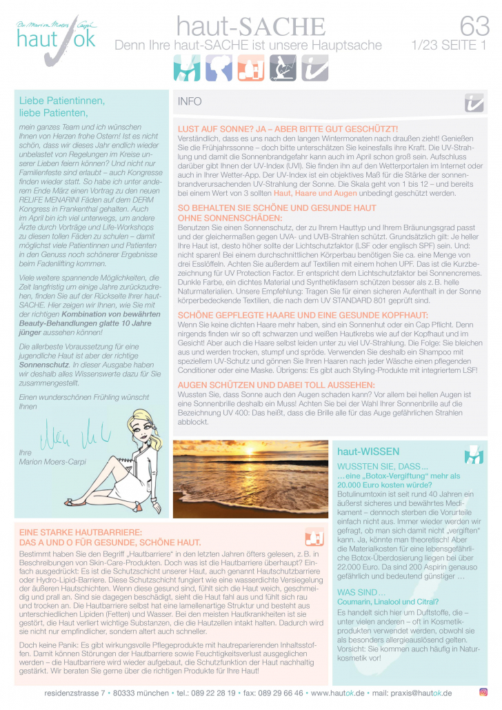 Newsletter Hautsache der dermatologischen Praxis hautok